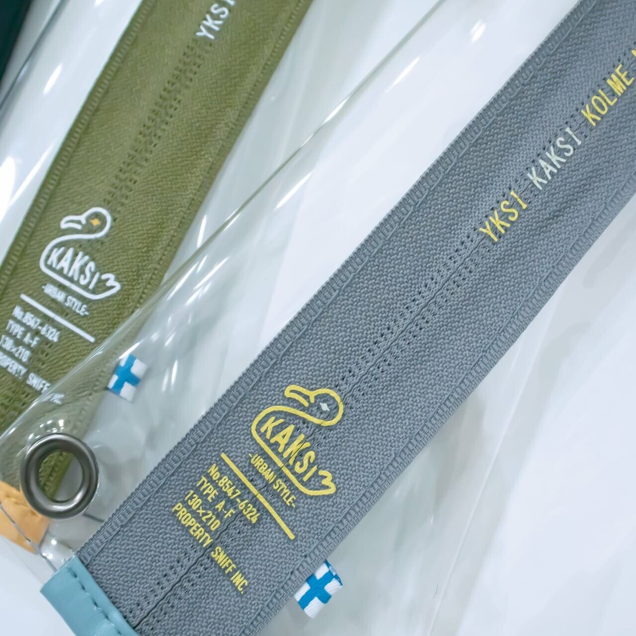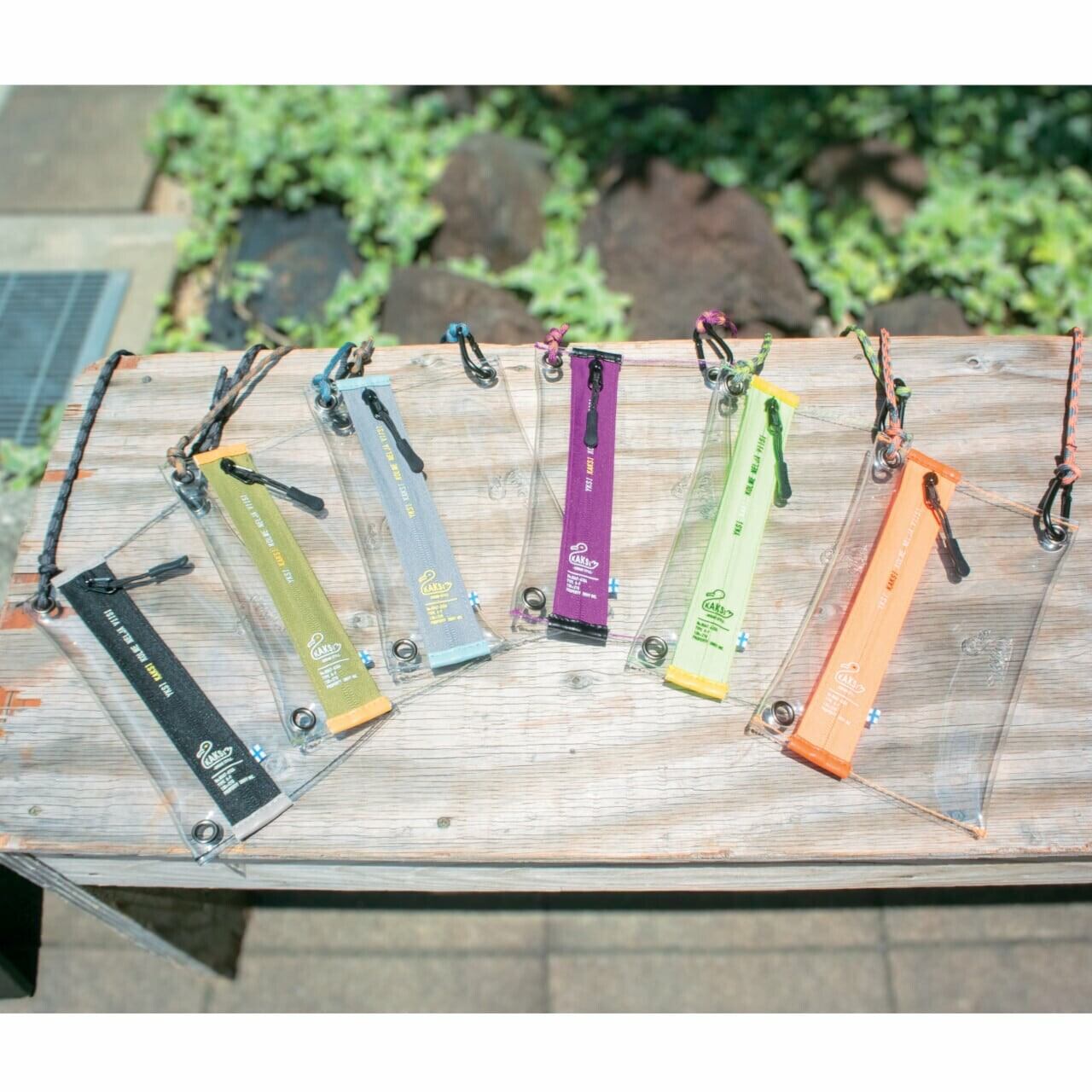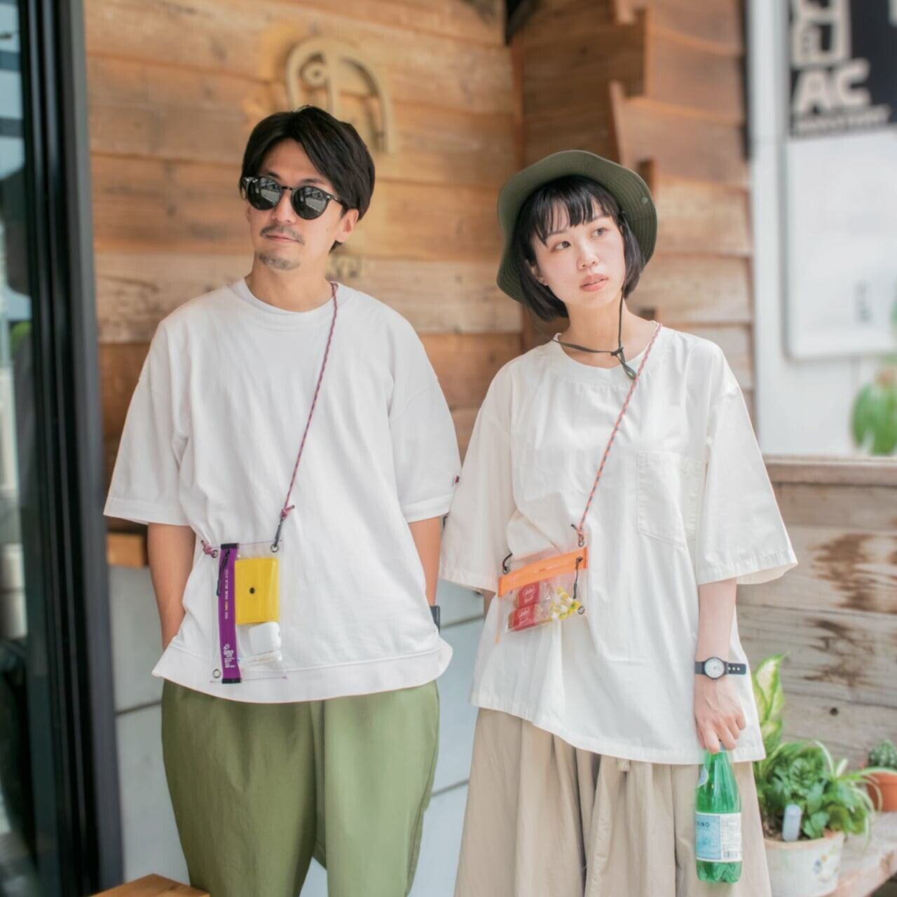 ファスナーテープのカラーに合わせたショルダーコードは、片方がカラビナになっているので付け替えも簡単。カラビナを付ける位置で、縦型にも横型にもできます。ショルダーコードを取り外せば、シンプルなポーチとしても使用可能。その日の気分やコーディネートに合わせて、様々なスタイルにチェンジ!