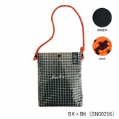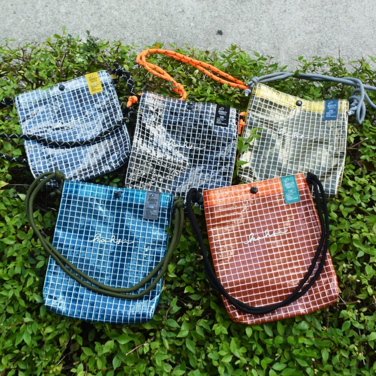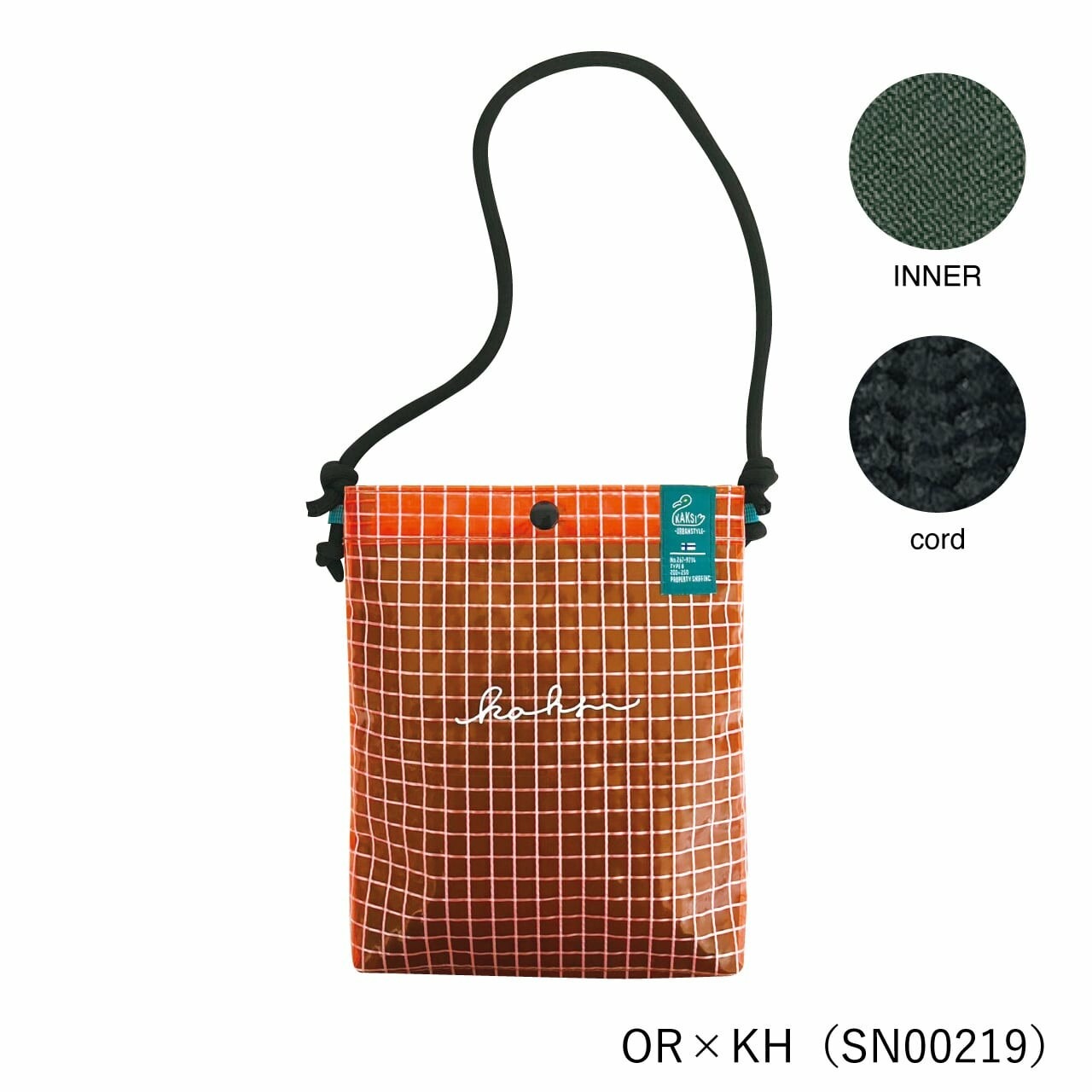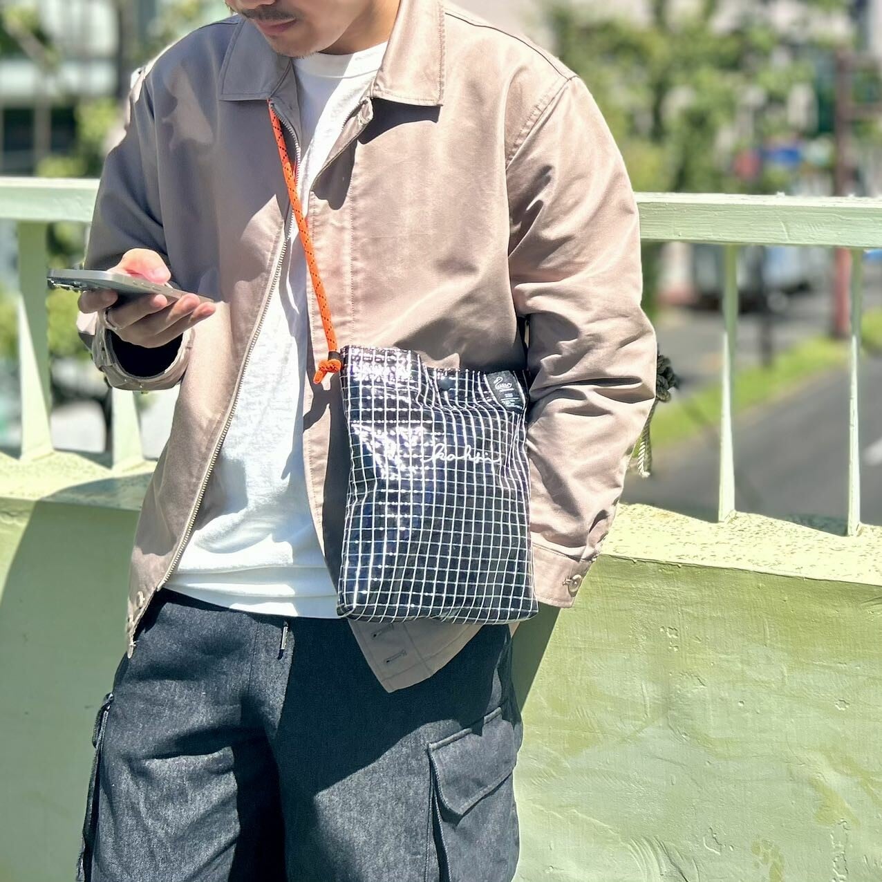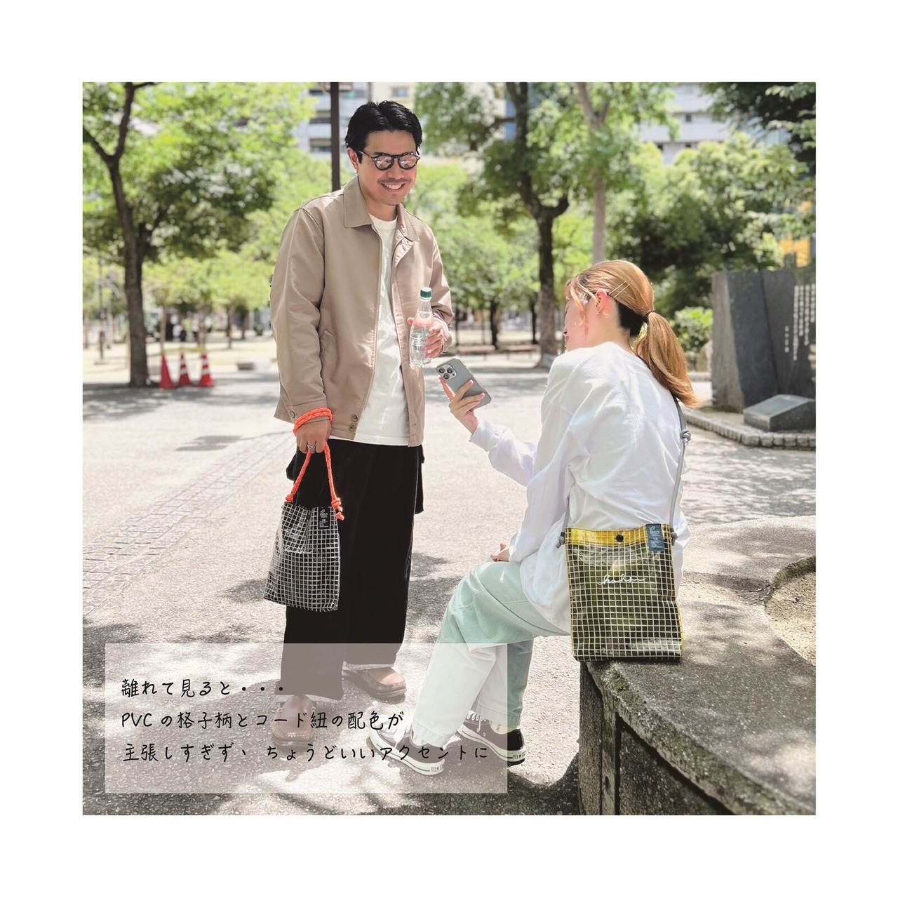 格子柄クリア生地にワンポイントのロゴが可愛いサコッシュができました。