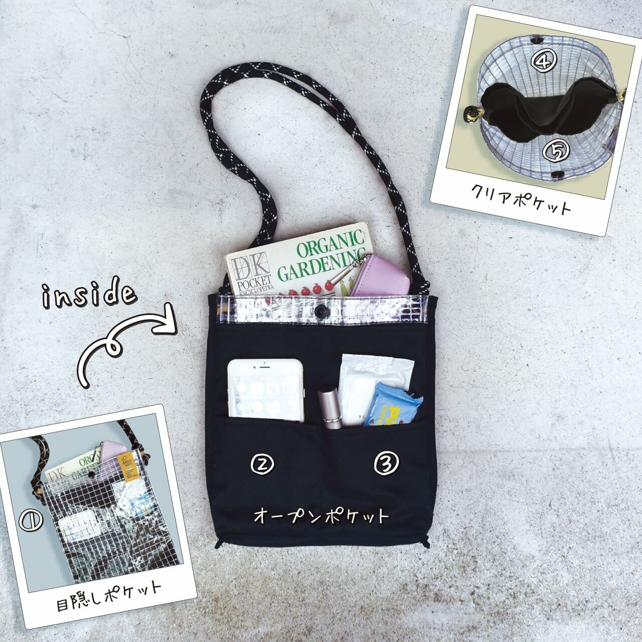 【透けすぎないクリア生地の"見せる"を楽しめるサコッシュ】