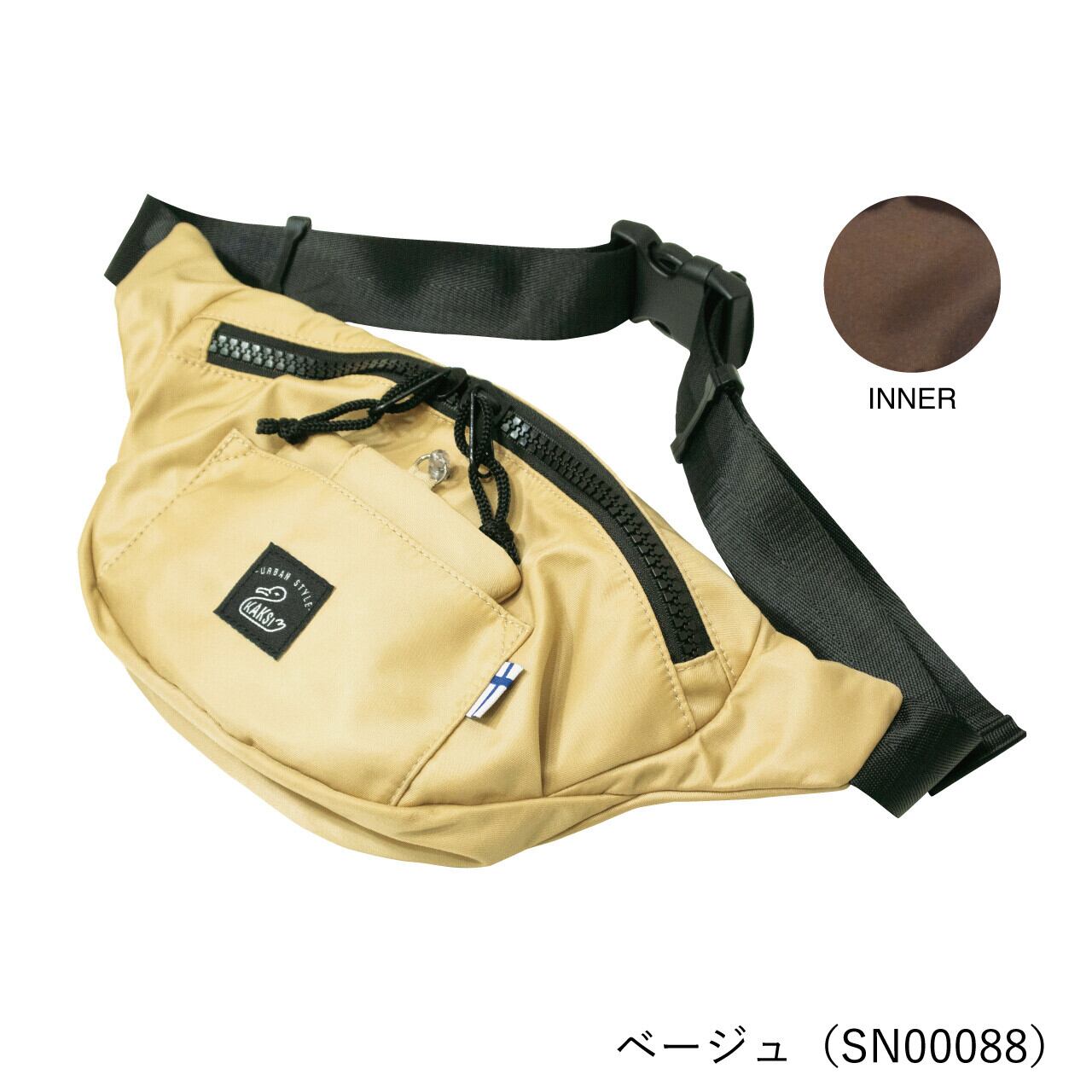 光沢のある生地カジュアルになりすぎず、大人っぽい印象のボディバッグ。カジュアルなファッションだけじゃなく、シックなファッションにも違和感なく合わせることができます。本体生地はベーシックなカラーですが、内生地はカラフルでかわいく。遊び心も忘れません。